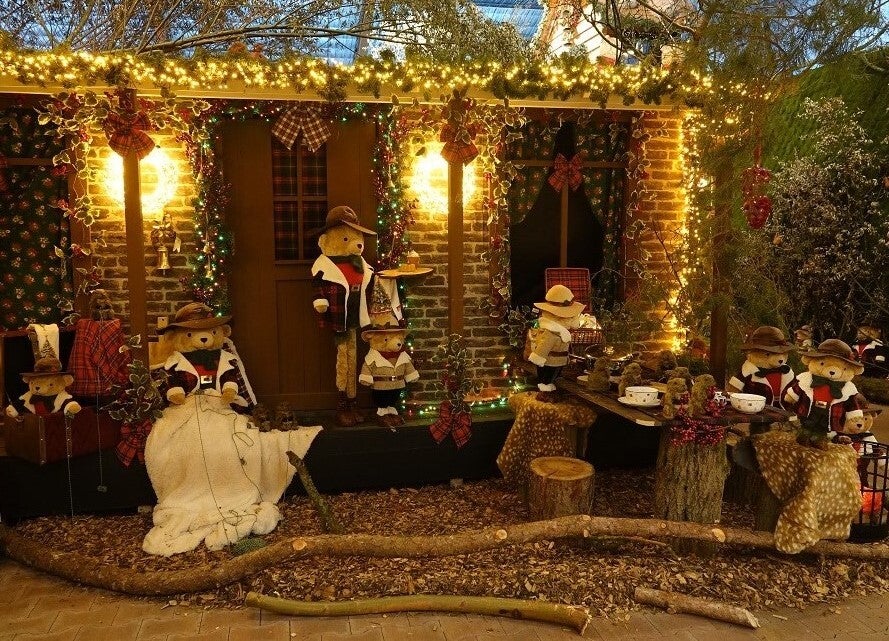 Laten we bij het begin beginnen: tuincentrum Global Garden opent met een grote collectie kunstkerstbomen en guirlandes, in alle soorten en maten, met en zonder verlichting. Tussen de kerstbomen zit een berenfamilie beregezellig te picknicken, terwijl de kleintjes vrolijk aan het kleuren zijn. Even verderop staan de kerstdorpen opgesteld en is er een bijzonder grote afdeling met kerstverlichting en verlichte kerstfiguren, waaronder een diepzee aquarium.