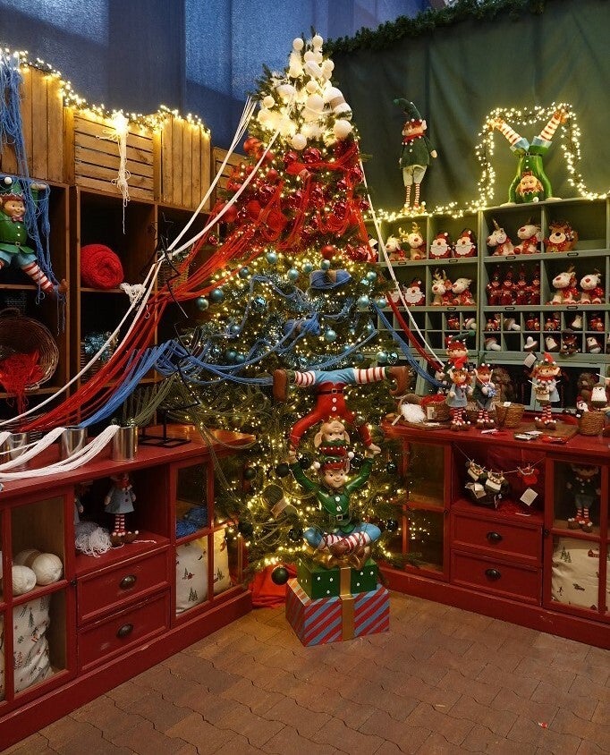 Ook de kerstelfjes zijn druk aan het werk voor de kerstman. In hun werkplaats zijn ze met hun favoriete kleuren blauw, rood en wit net een kerstboom aan het decoreren. Op deze grote afdeling vind je de leukste kerstaccessoires voor een traditionele kerst, met leuke kerstmannetjes, kerstelfjes, een leuk zingend koortje, heel veel kerstmokken en een baby's eerste kerst hoek.